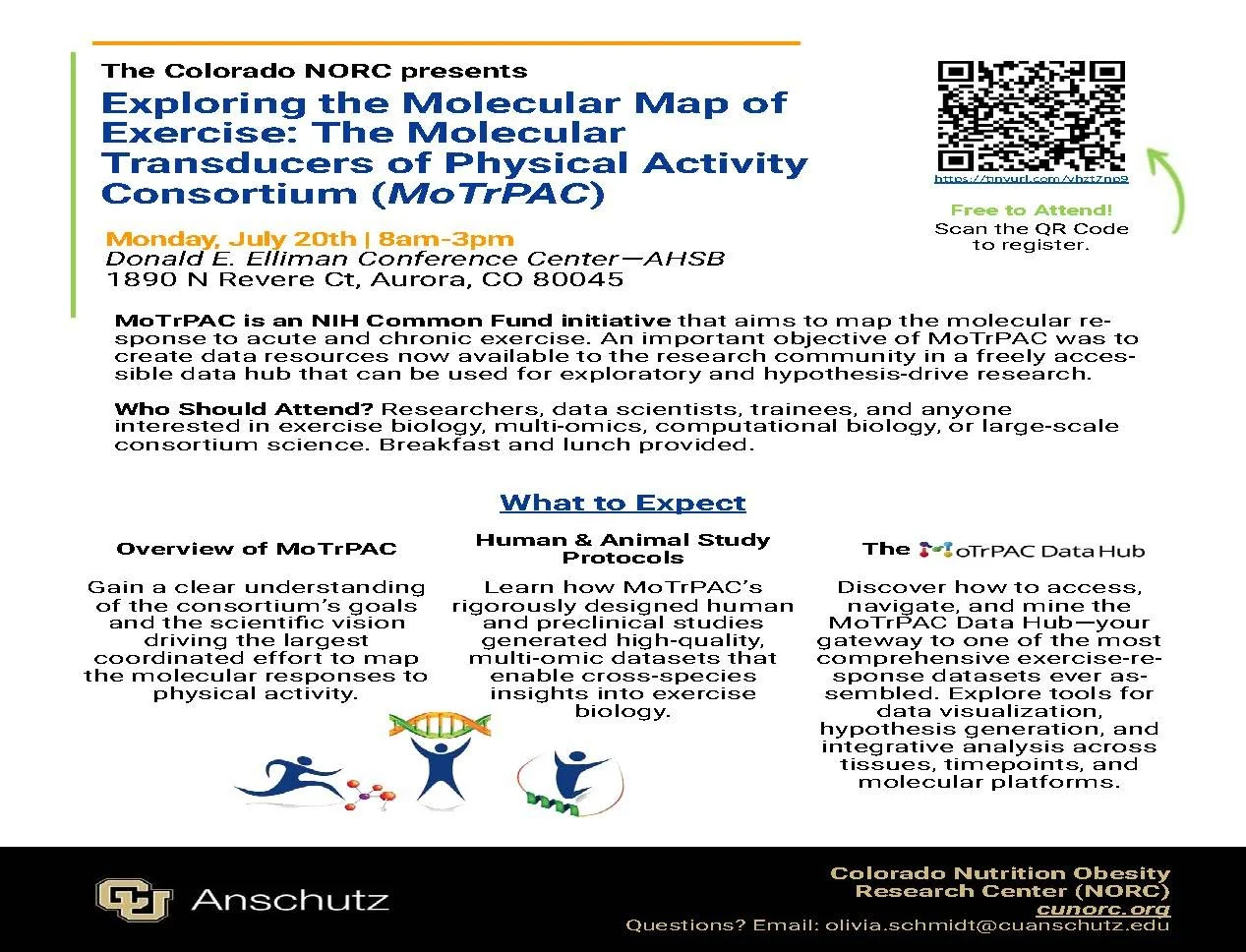 On Monday, July 20, 2026, the Colorado NORC presents "Exploring the Molecular Map of Exercise: The Molecular Transducers of Physical Activity Consortium (MoTrPAC)."